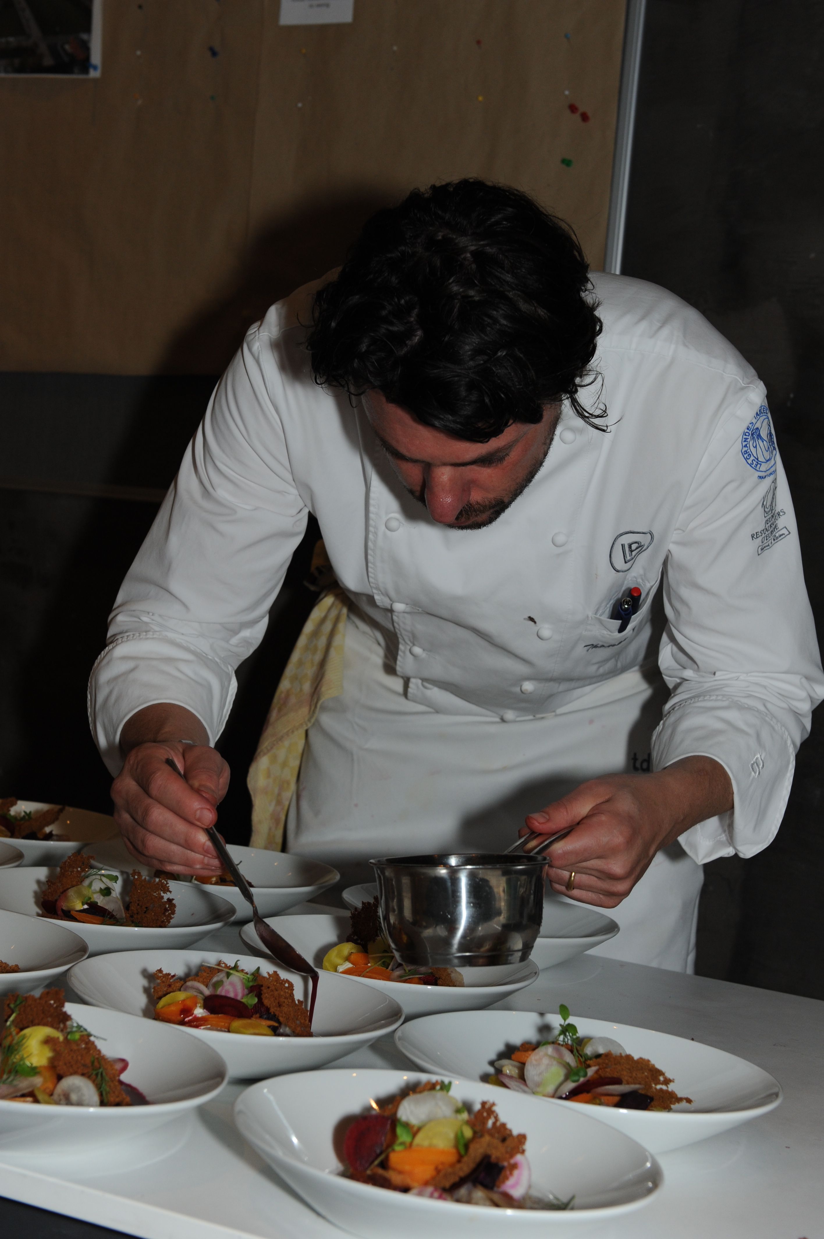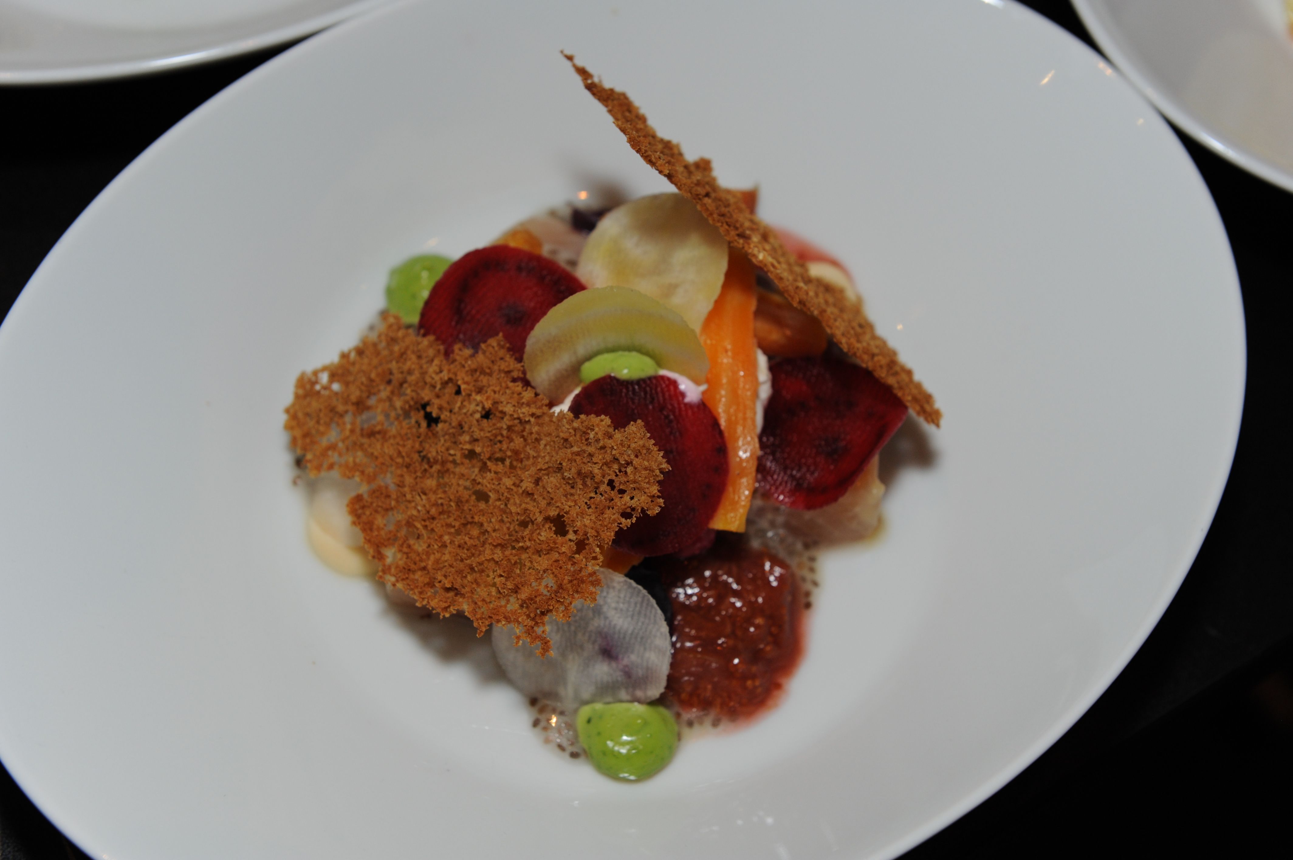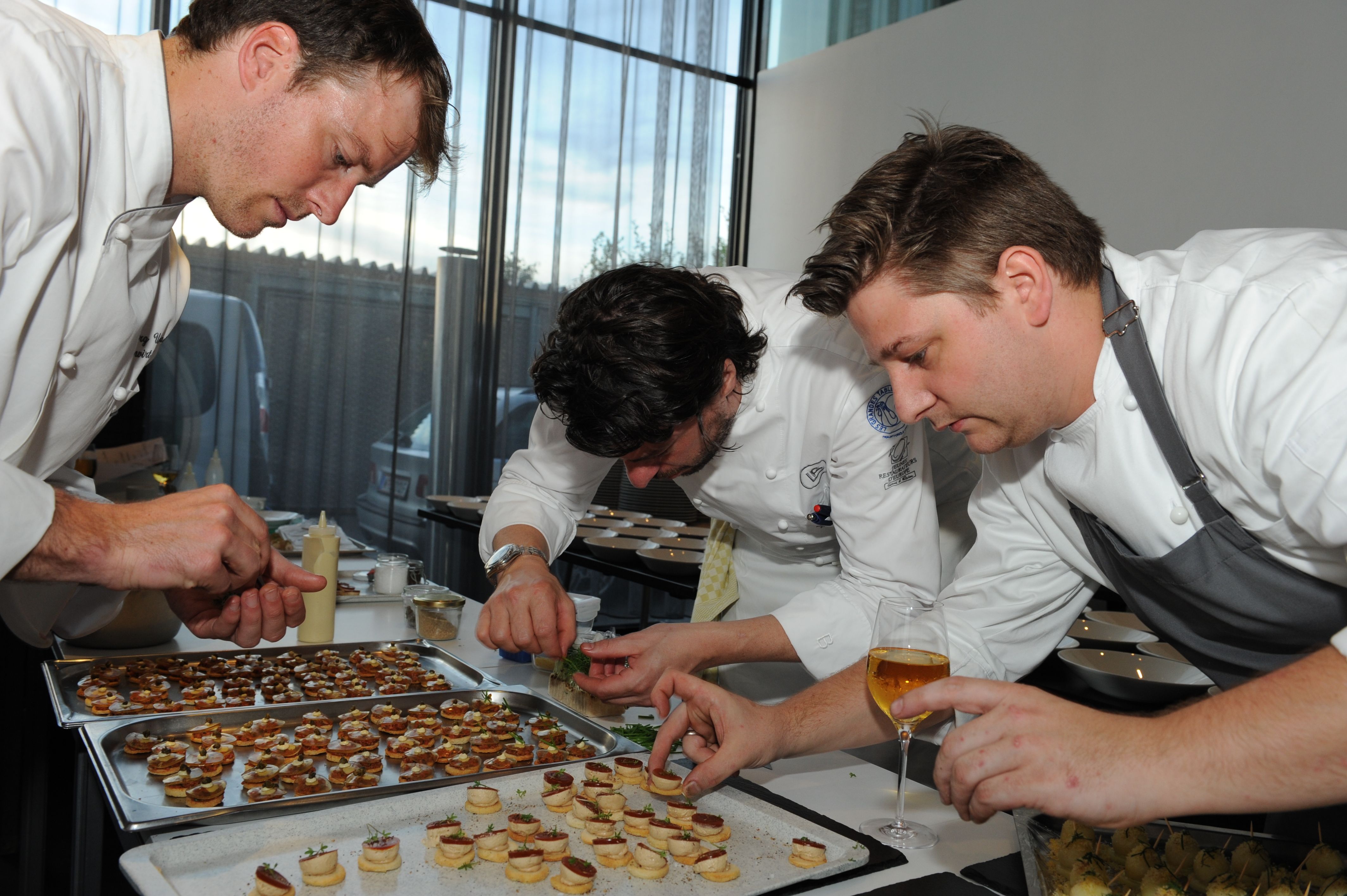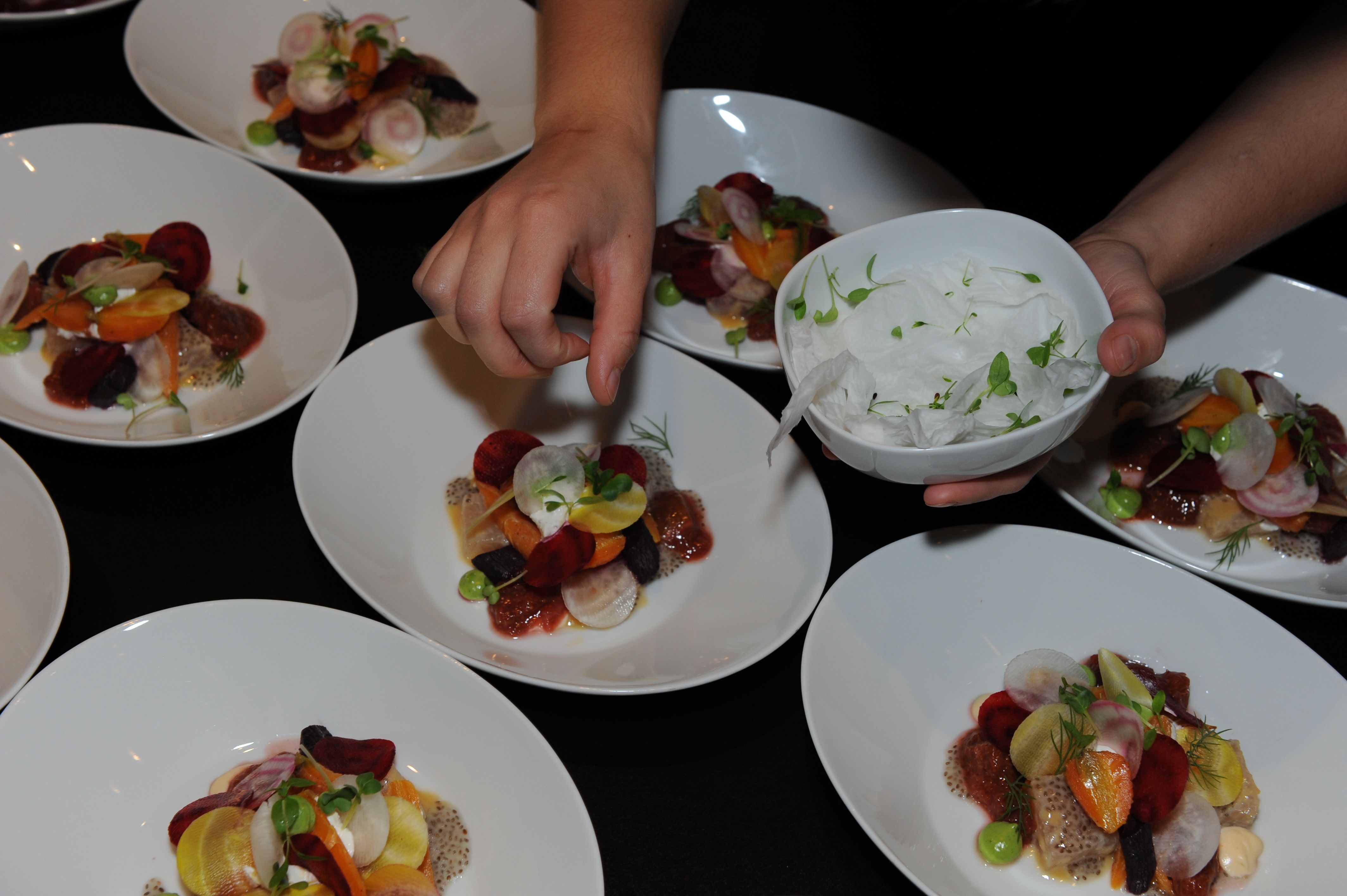Auch kulinarisch sorgte der Abend für Begeisterung bei den Gästen: fünf Spitzenköche aus den Reihen der Jeunes Restaurateurs d’Europe Österreich servierten ein fulminantes Menü, begleitet von gereiften Weinen der Traditionsweingüter. Thomas Göls vom Restaurant Hill war für die kleinen Köstlichkeiten von confierten Erdäpfeln über Saiblingstartelett, Hilltatar und Gänseleber mit Hagebutte zum Aperitif zuständig. Thomas Dorfer, Genießerhotel Landhaus Bacher, servierte Seesaibling mit Rüben, eingekochten Feigen und Labneh. Von Thorsten Probost, Burg Vital Resort, kam der gedämpfte Zander auf geschmorter Gerste mit Kräutern und Sauce vom Grünen Veltliner, großes Kino war der (eigenhändig geschossene) rosa gebratene Hirsch mit Kürbis & Steinpilzen, von Hans Jörg Unterrainer und Fritz Braumüller, Kirchenwirt in Leogang. Josef Floh, Gastwirtschaft Floh, schließlich zeigte mit Demeter Gries-Röllchen und Weintrauben, dass ein Dessert nicht zuckersüß sein muss.