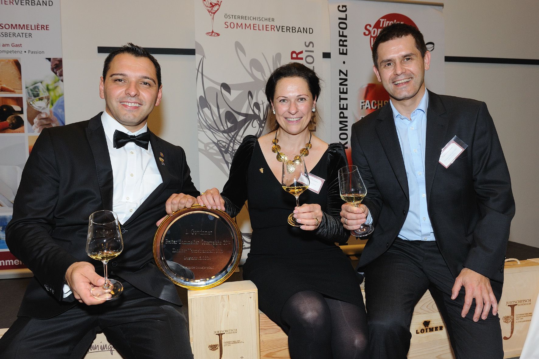 Suwi Zlatic konnte in allen Bereichen am stärksten punkten und hatte mit seinem Charme auch sofort das Publikum im Griff. Der 32-jährige Tiroler von Geigers Posthotel in Serfaus konnte sich in einem bis zuletzt spannenden Wettkampf mit einer bravourösen Performance durchsetzen. Sein erster Platz ist zugleich auch das Ticket für die Sommelier-Weltmeisterschaft 2016 in Argentinien. Der 32-jährige gebürtige Bosnier kam 1993 nach Österreich und lebt seit 12 Jahren in Serfaus. Er hatte sich akribisch auf diesen Wettbewerb vorbereitet. Unterstützung erhielt er dabei sowohl von Chef und Hotelier Florian Geiger als auch vom Tiroler Sommelierverband. Annemarie Foidl, Präsidentin des Österreichischen Sommelierverbands, kennt den Ehrgeiz von Suwi Zlatic und seinen absoluten Willen, etwas erreichen zu wollen. „Ein Wettbewerb ist etwas ganz anderes als im Restaurant zu stehen. Du musst wissen, was von dir verlangt wird. Das bedeutet gezielte Vorbereitung wie bei einem Sportwettkampf. Suwi war diesbezüglich wohl der Versierteste und am besten aufgestellt, was die Unterstützung betrifft. Es wäre unser Anliegen, dass alle Chefs ihre guten Mitarbeiter mehr unterstützen!“