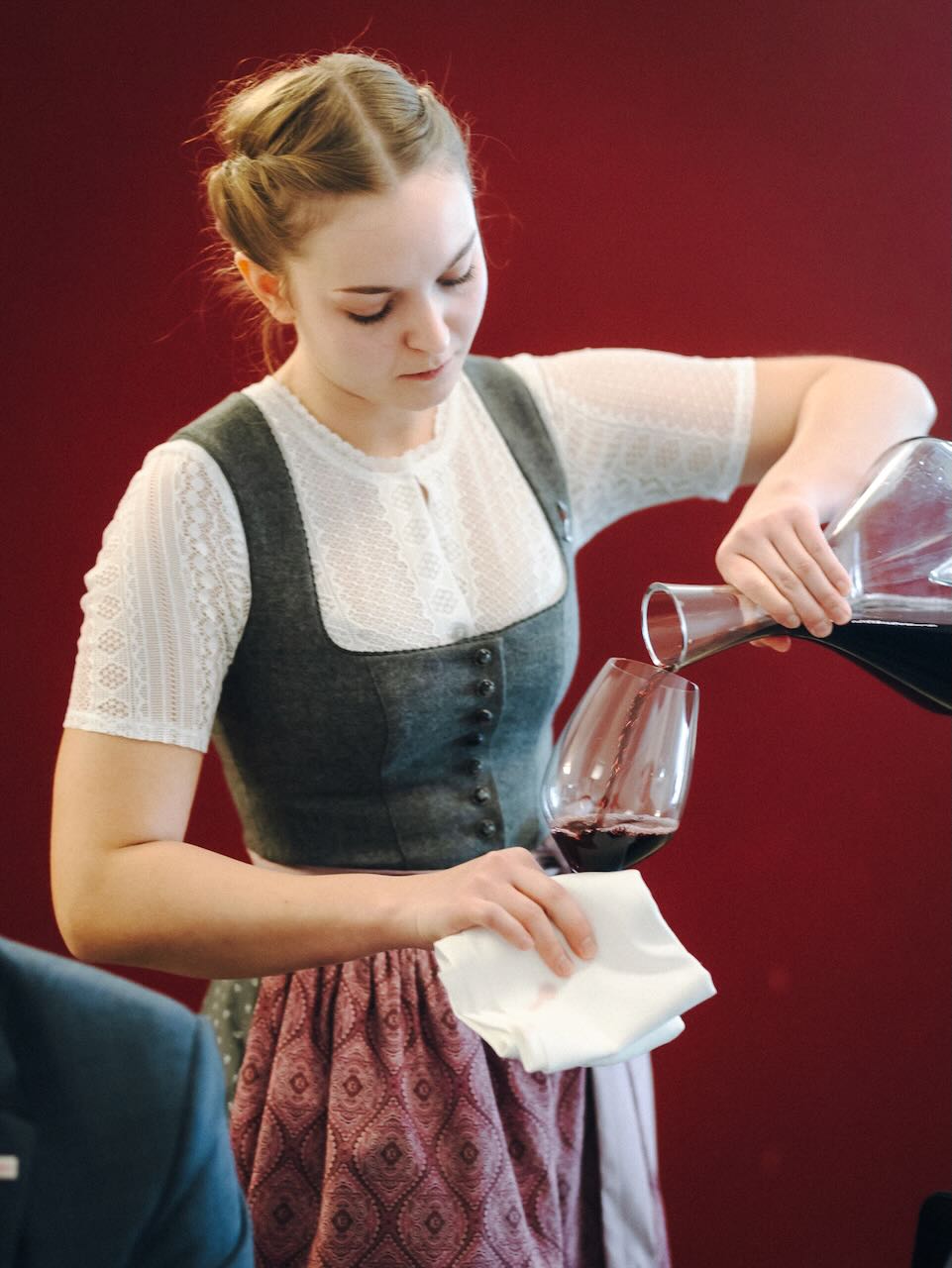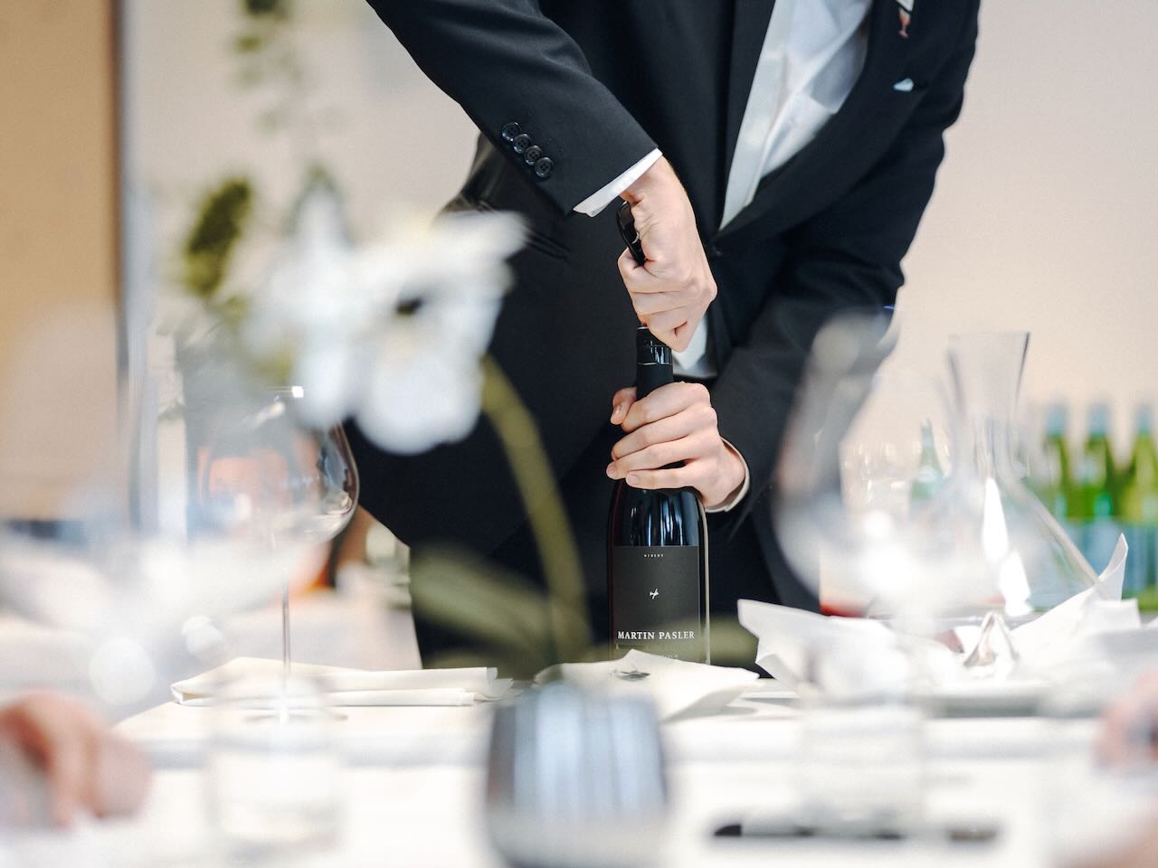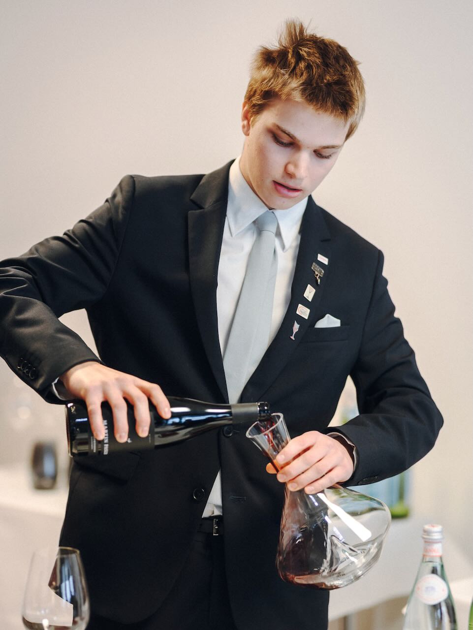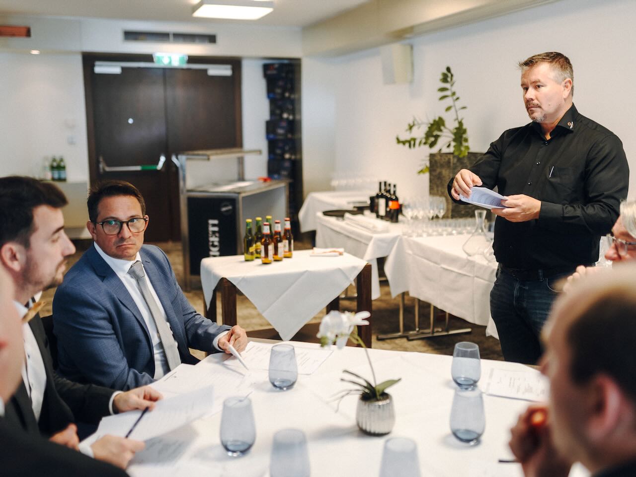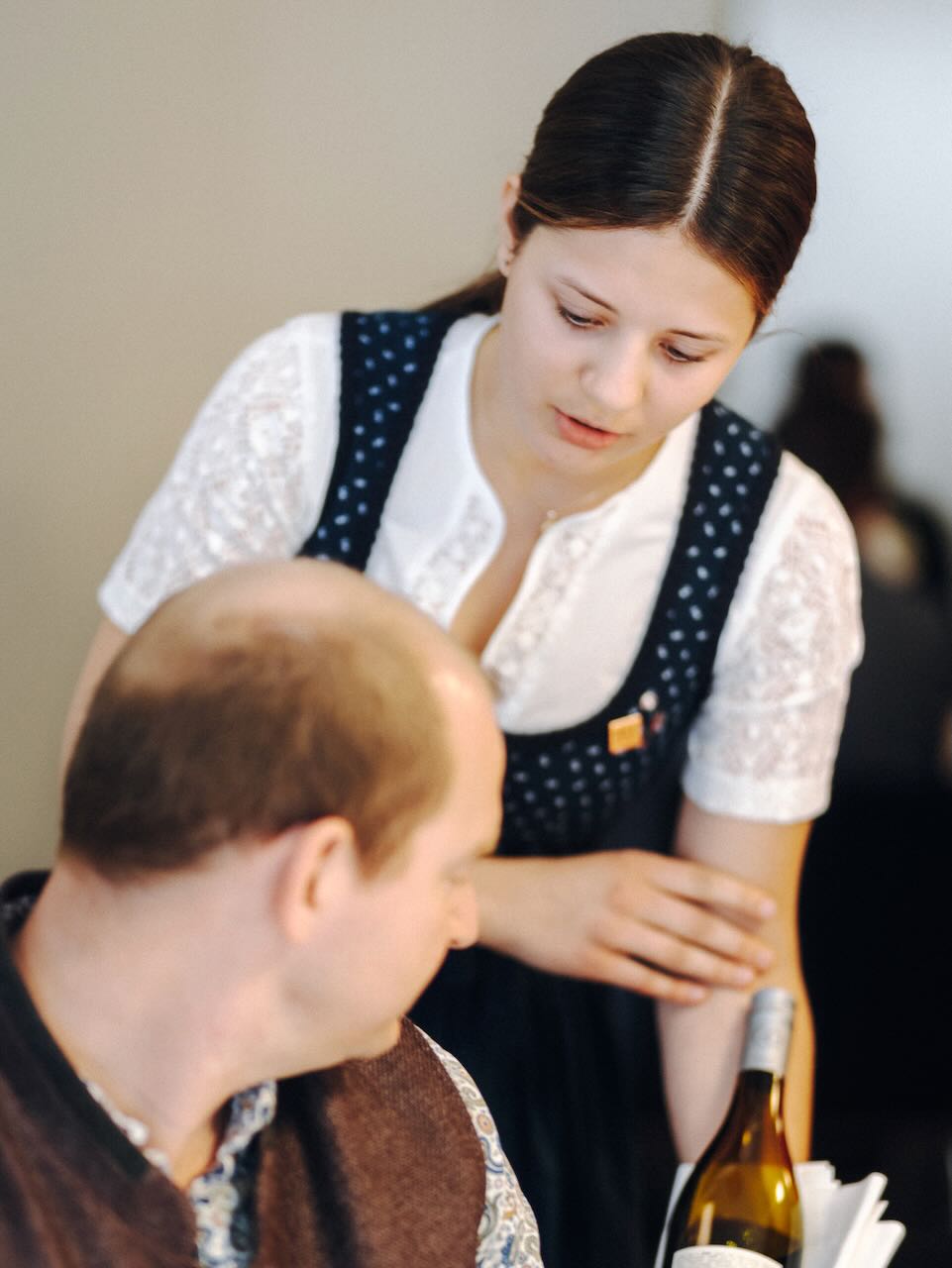 Als erste Aufgabe galt es einen umfassenden Fragebogen auszufüllen, der etwa die klassifizierten Rebsorten österreichischer DAC-Gebiete, das Benennen von Flaschengrößen, das Verorten von namhaften Rieden inklusive Winzer*in, Kellertechnik und allgemeine Getränkekunde umfasste. Beim praktischen Teil war eine Flasche Rotwein zu servieren und auf den kniffligen Änderungswunsch eines Gastes einzugehen.