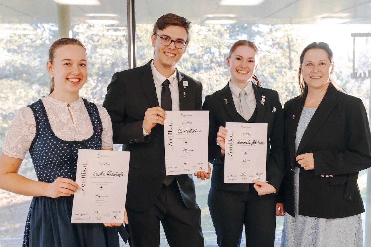 Bei all diesen Aufgaben konnte Christoph Bleier die meisten Punkte sammeln und darf sich über den Titel „Bester Nachwuchssommelier 2025“ freuen. Damit schließt der gebürtige Wiener an seinen Erfolg von 2022 an, als er den Wettbewerb das erste Mal gewann. Aktuell ist Christoph Bleier bei Wein & Co als Weinberater tätig. Der zweite Platz ging an Franziska Kaufmann, Schülerin der Hertha-Firnberg-HLW Wien, und den dritten Platz sicherte sich Sophie Winkelhofer, Schülerin der HLF Krems.