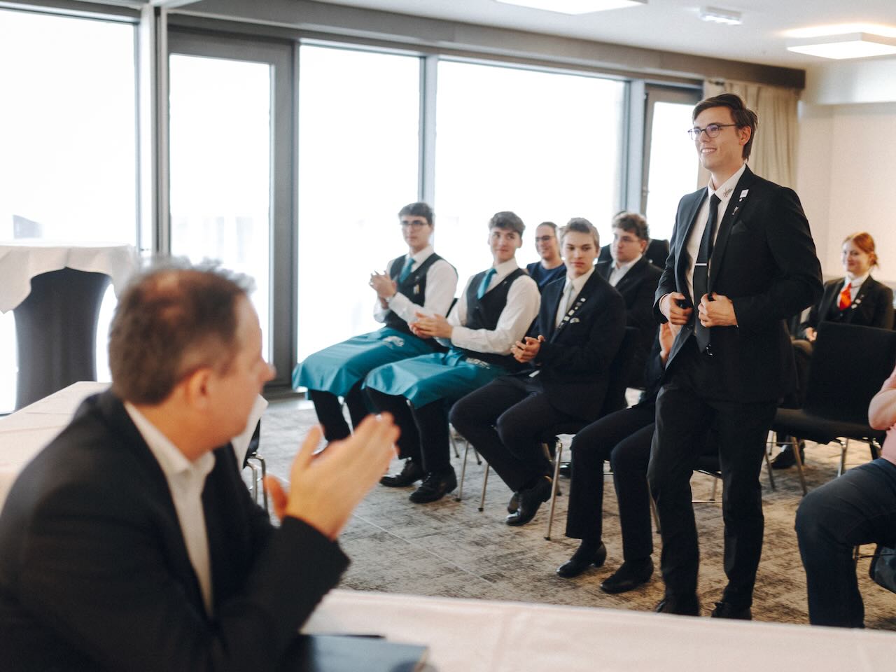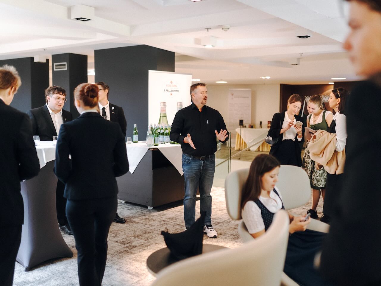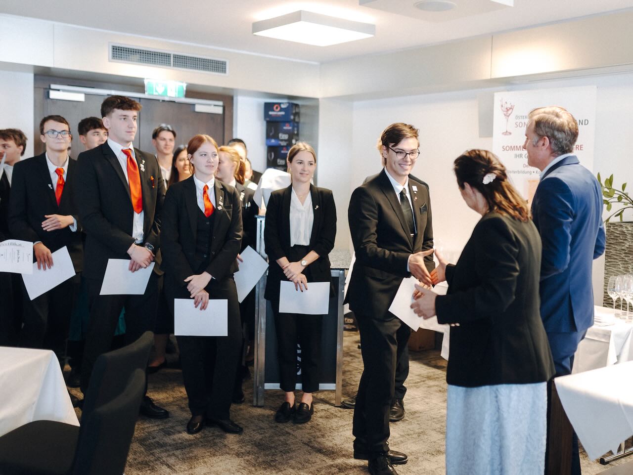 Jedes Jahr organisieren wir die Sommelier-Rookies den Wettbewerb „Bester Nachwuchssommelier Österreichs“. Zugelassen sind Kandidat*innen, die noch keine abgeschlossene Ausbildung als Diplom-Sommelier haben und maximal 22 Jahre alt sind. Am 3. November 2025 stellten sich 18 Kandidat*innen – so viele wie noch nie – im DoubleTree by Hilton Vienna Schönbrunn den vielfältigen Aufgaben der Jury. Der Vorsitz oblag Philipp Künemund, Vizepräsident der Sommelier Union Deutschland.