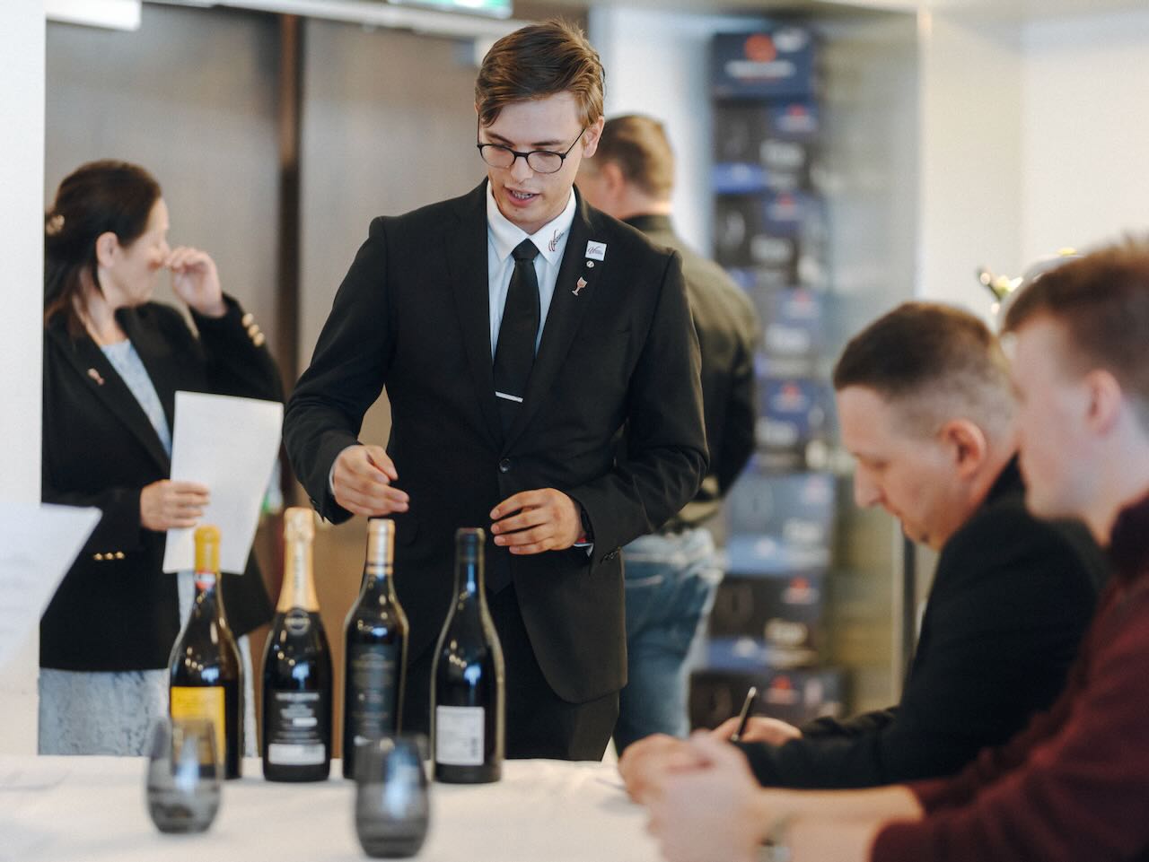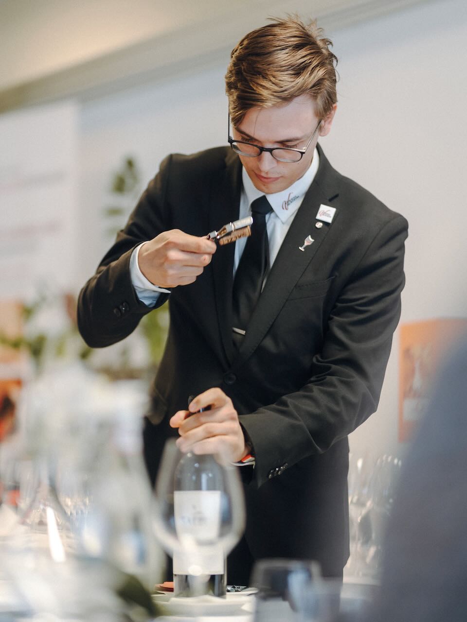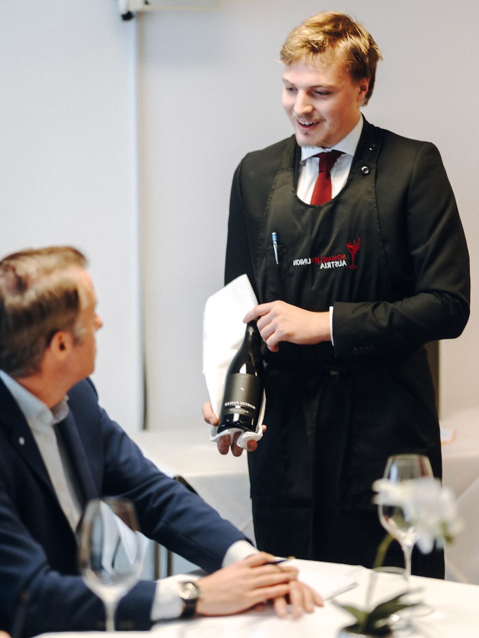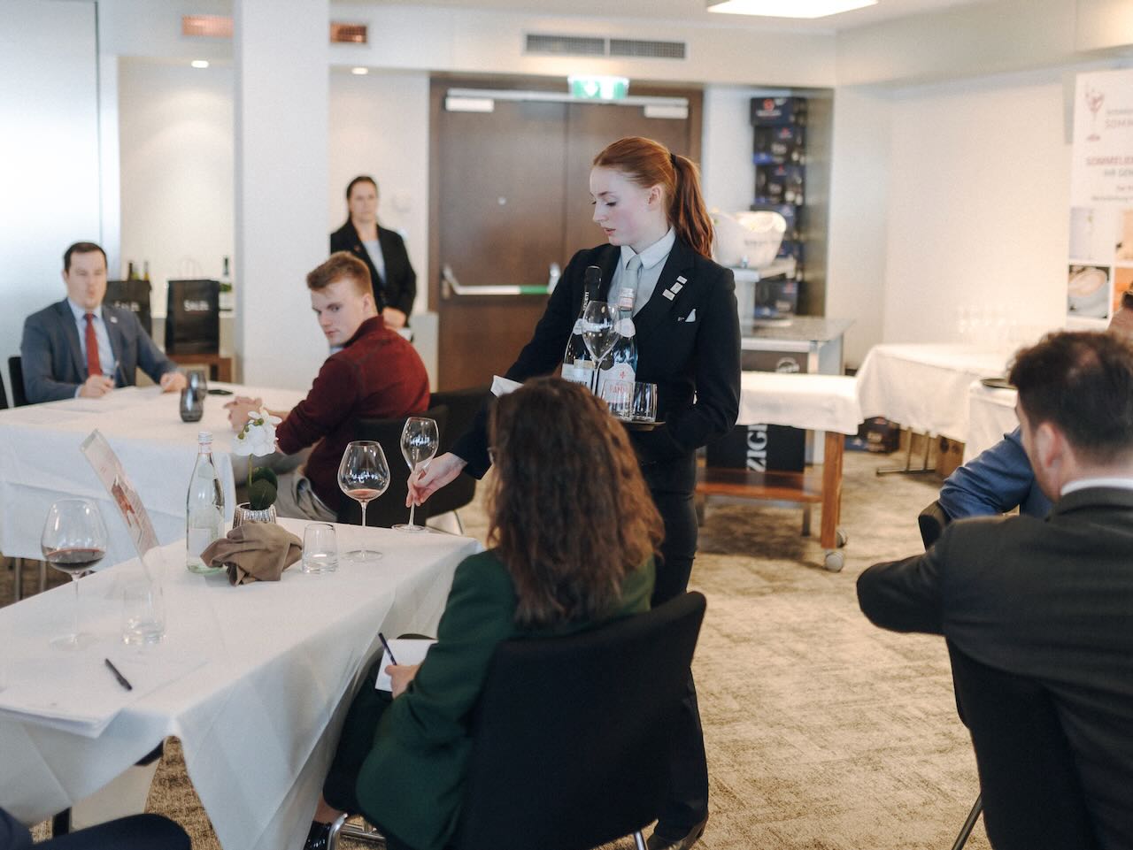 Im Finale wurden verschiedene Restaurantsituationen simuliert. So hatten an einem Tisch die Gäste vier Weine selbst mitgebracht, die es schlüssig zu reihen galt – nebst Empfehlung einer passenden Menüfolge und eines Zusatzverkaufs. An einem anderen Tisch klang die Aufgabe, eine Flasche Rotwein in zehn Minuten zu servieren, zunächst unspektakulär. Hier hatten die Gäste allerdings viele Fragen zum Wein, und schließlich äußerte ein Gast den Wunsch nach einer Alternative zum Wein, die auf Basis definierter Vorgaben auszuwählen und zu servieren war. Spannend erwies sich außerdem die Aufgabe, drei Weine aus schwarzen Gläsern zu verkosten und zu beschreiben, wobei der Rotwein als kleine Hürde – wie die Weißweine – gekühlt war. Weiters mussten drei Spirituosen nur durch Riechen benannt werden – Gin, Marillenbrand und Whiskey. Schließlich wurde auch noch Wissen abgefragt, etwa von welchem Hersteller der erste Sekt in Österreich produziert wurde, welche Erfindung auf Lenz Moser zurückgeht, welche Rebsorten sich hinter Schilcher und Uhudler verbergen oder wo Master of Wine Roman Horvath arbeitet.