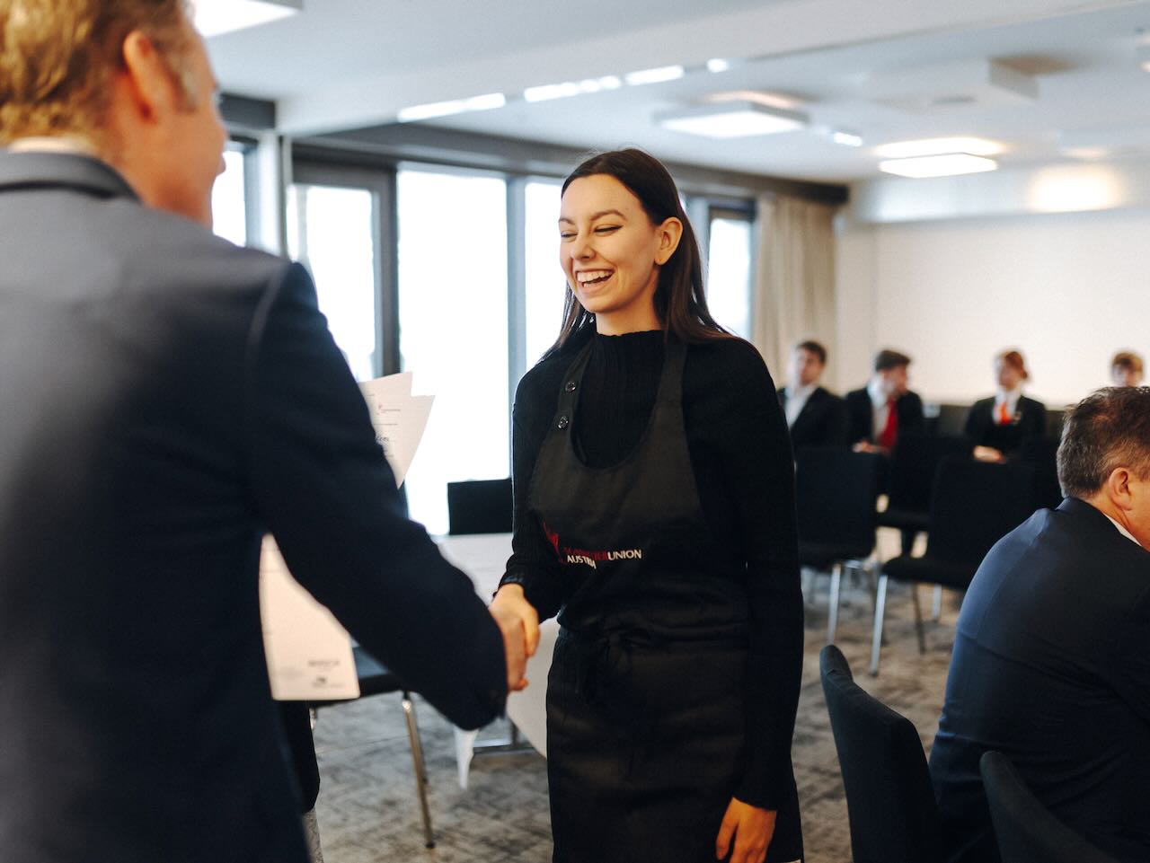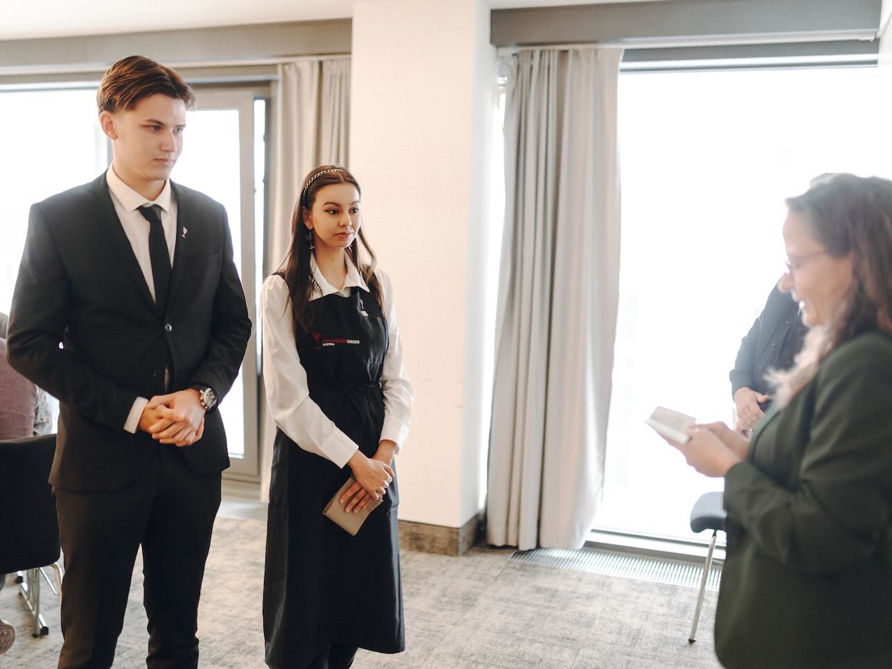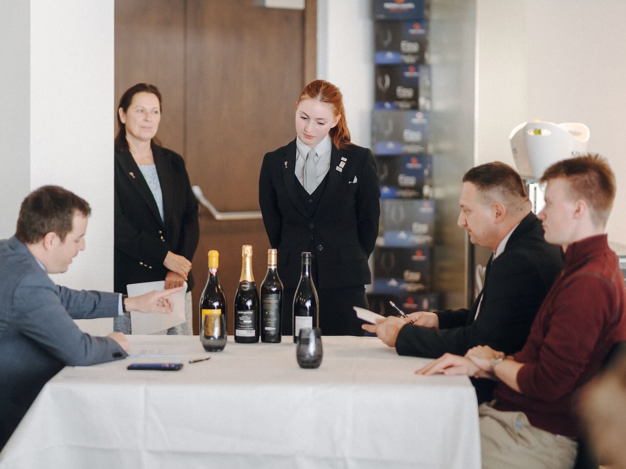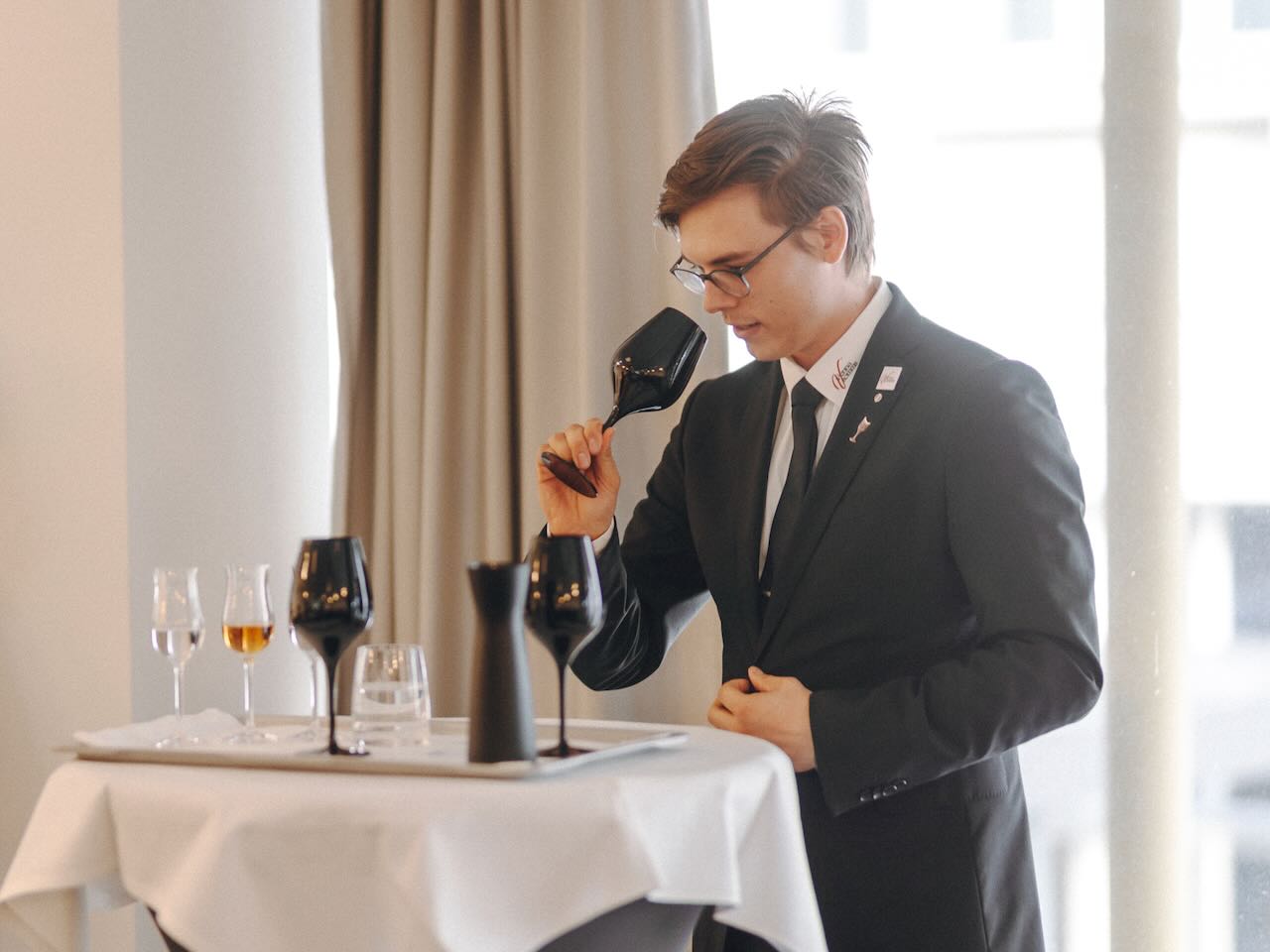 Im Finale wurden verschiedene Restaurantsituationen simuliert. So hatten an einem Tisch die Gäste vier Weine selbst mitgebracht, die es schlüssig zu reihen galt – nebst Empfehlung einer passenden Menüfolge und eines Zusatzverkaufs. An einem anderen Tisch klang die Aufgabe, eine Flasche Rotwein in zehn Minuten zu servieren, zunächst unspektakulär. Hier hatten die Gäste allerdings viele Fragen zum Wein, und schließlich äußerte ein Gast den Wunsch nach einer Alternative zum Wein, die auf Basis definierter Vorgaben auszuwählen und zu servieren war. Spannend erwies sich außerdem die Aufgabe, drei Weine aus schwarzen Gläsern zu verkosten und zu beschreiben, wobei der Rotwein als kleine Hürde – wie die Weißweine – gekühlt war. Weiters mussten drei Spirituosen nur durch Riechen benannt werden – Gin, Marillenbrand und Whiskey. Schließlich wurde auch noch Wissen abgefragt, etwa von welchem Hersteller der erste Sekt in Österreich produziert wurde, welche Erfindung auf Lenz Moser zurückgeht, welche Rebsorten sich hinter Schilcher und Uhudler verbergen oder wo Master of Wine Roman Horvath arbeitet.